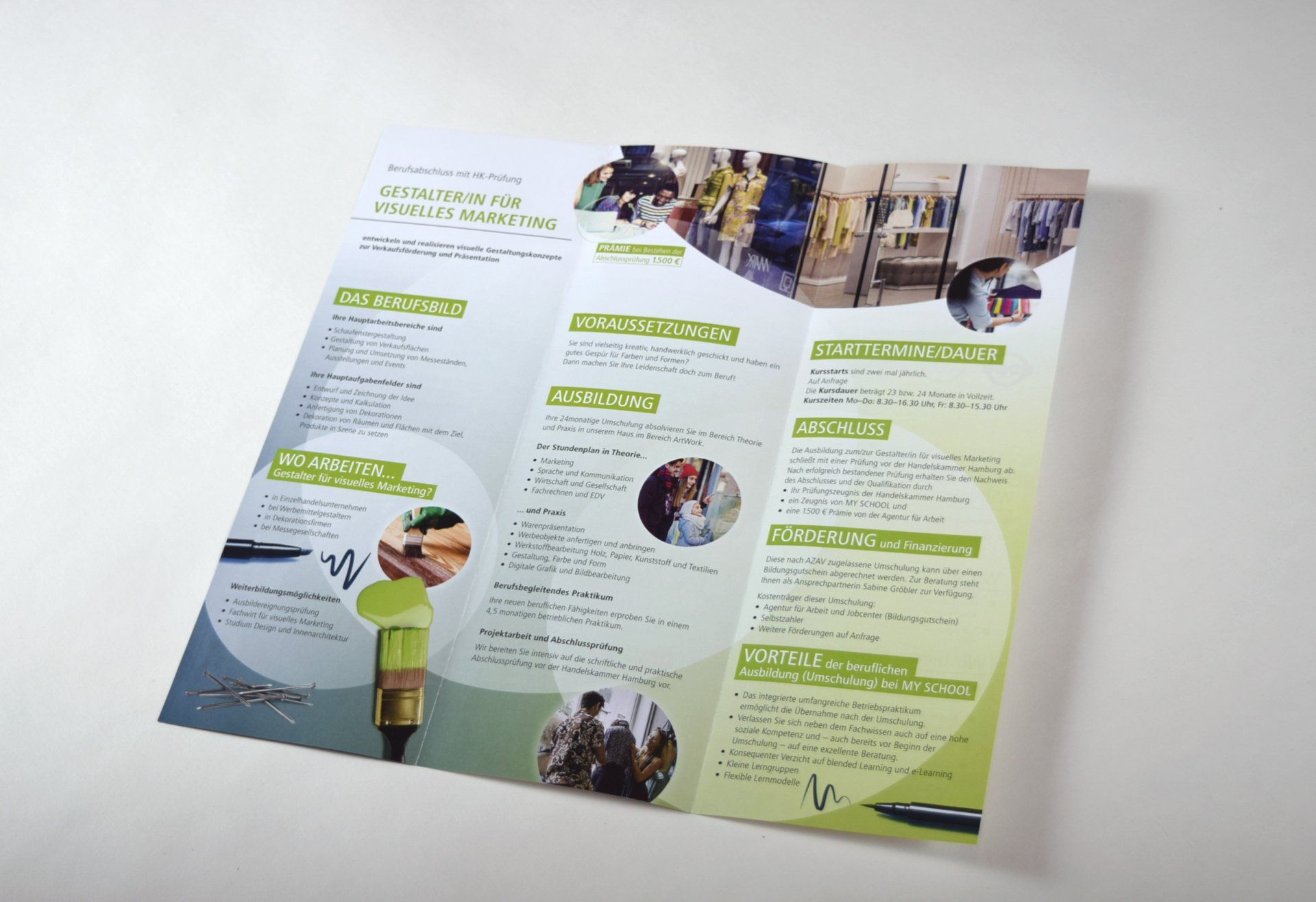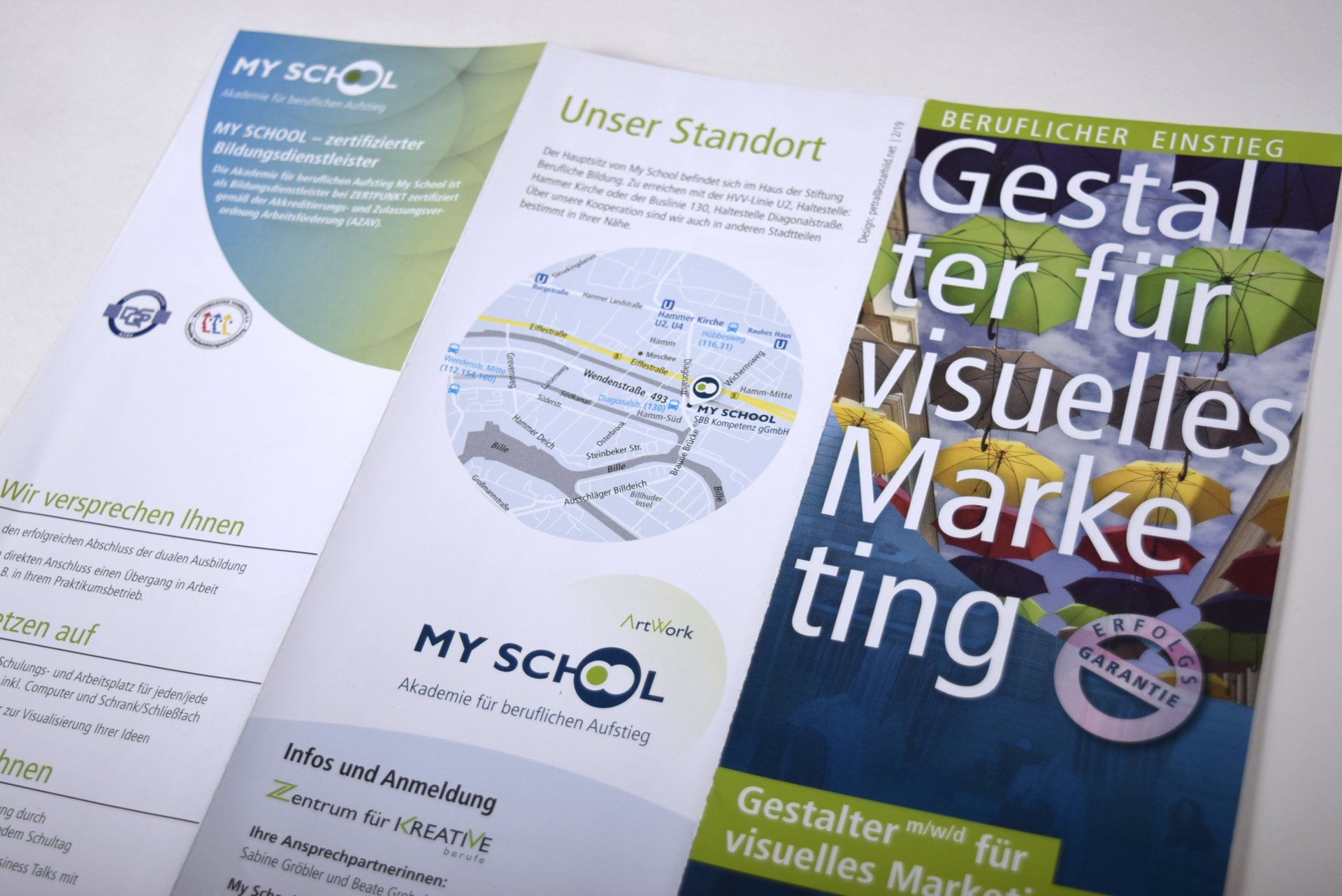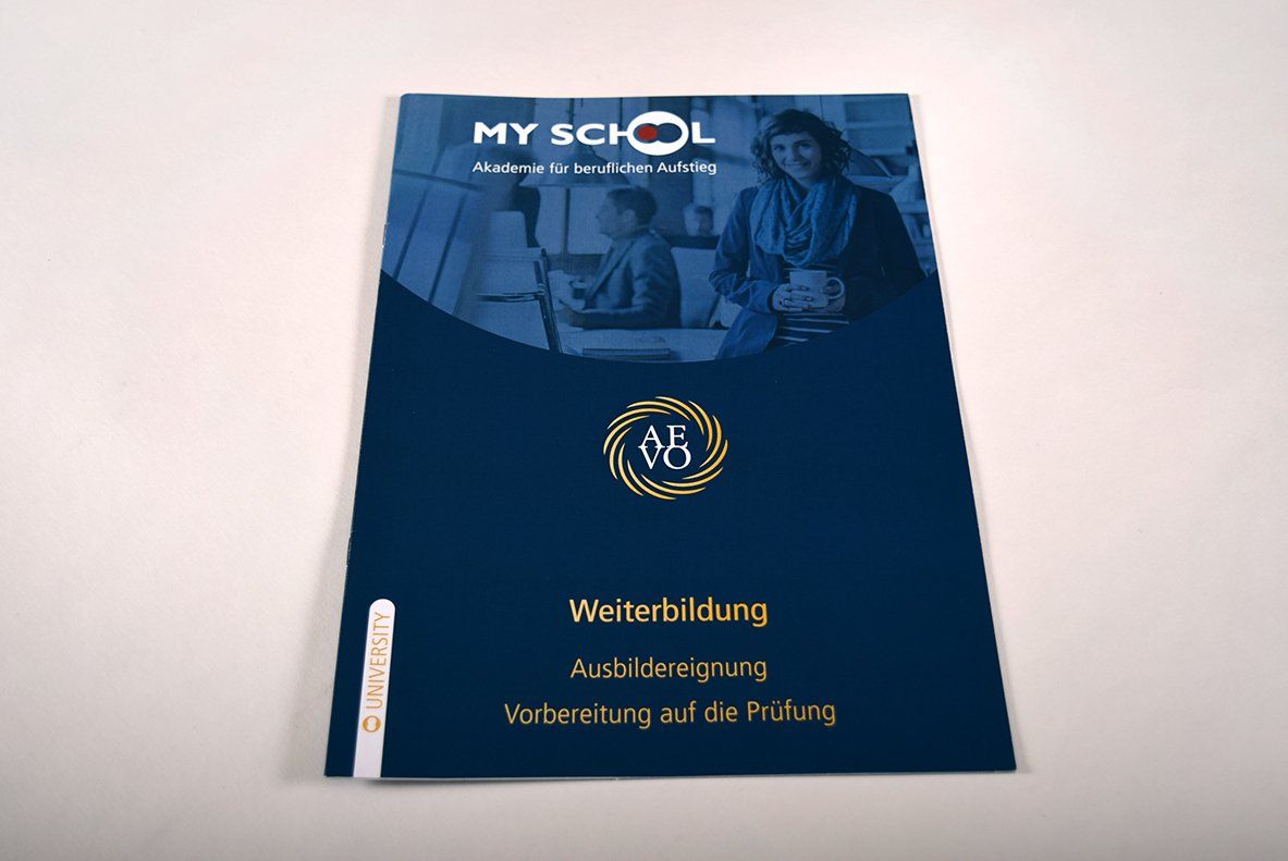 Daher gibt es für den Außenauftritt für Logo, Visitenkarten und auch die Flyer einen Auftritt, der zur Akademie für beruflichen Aufstieg passt.