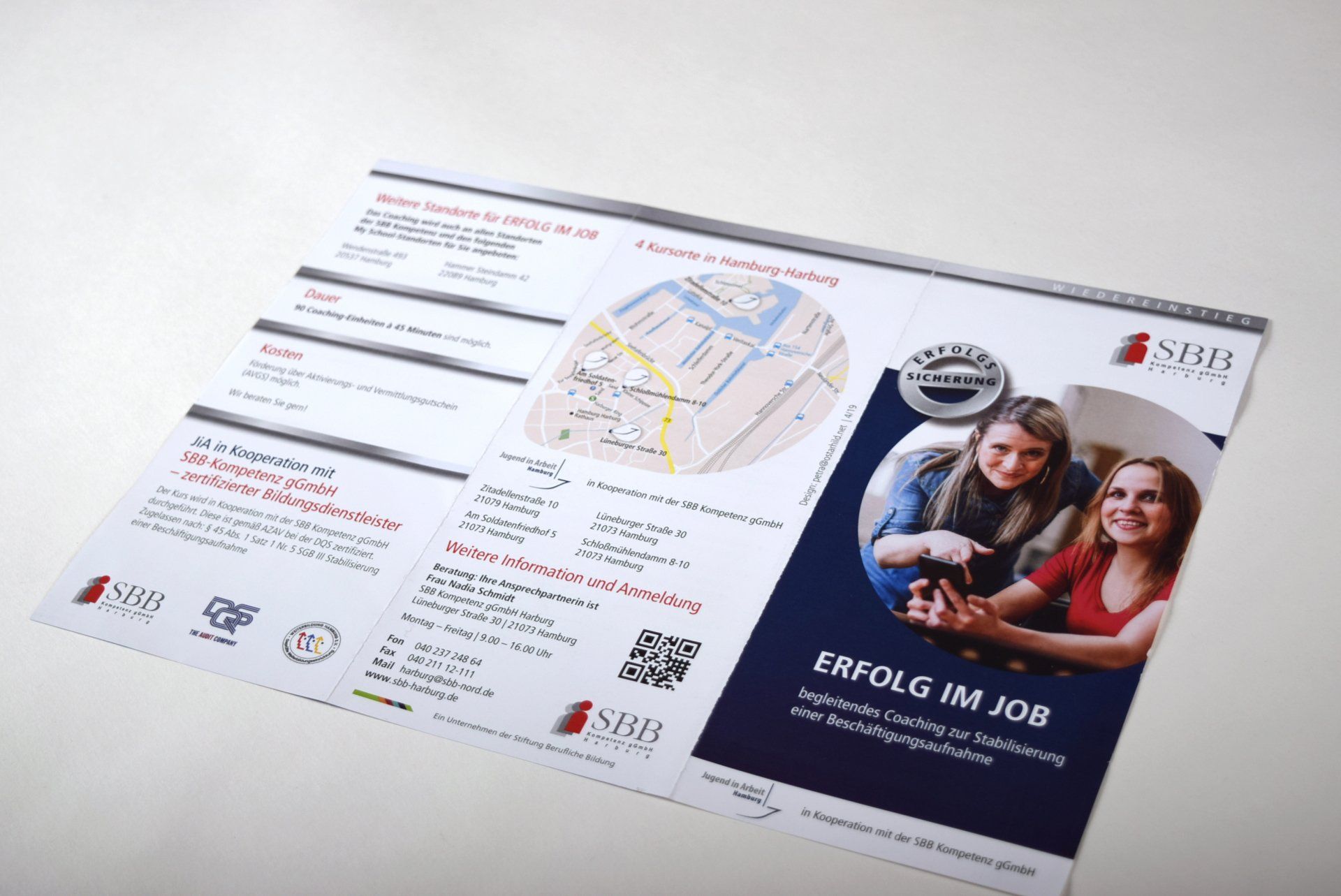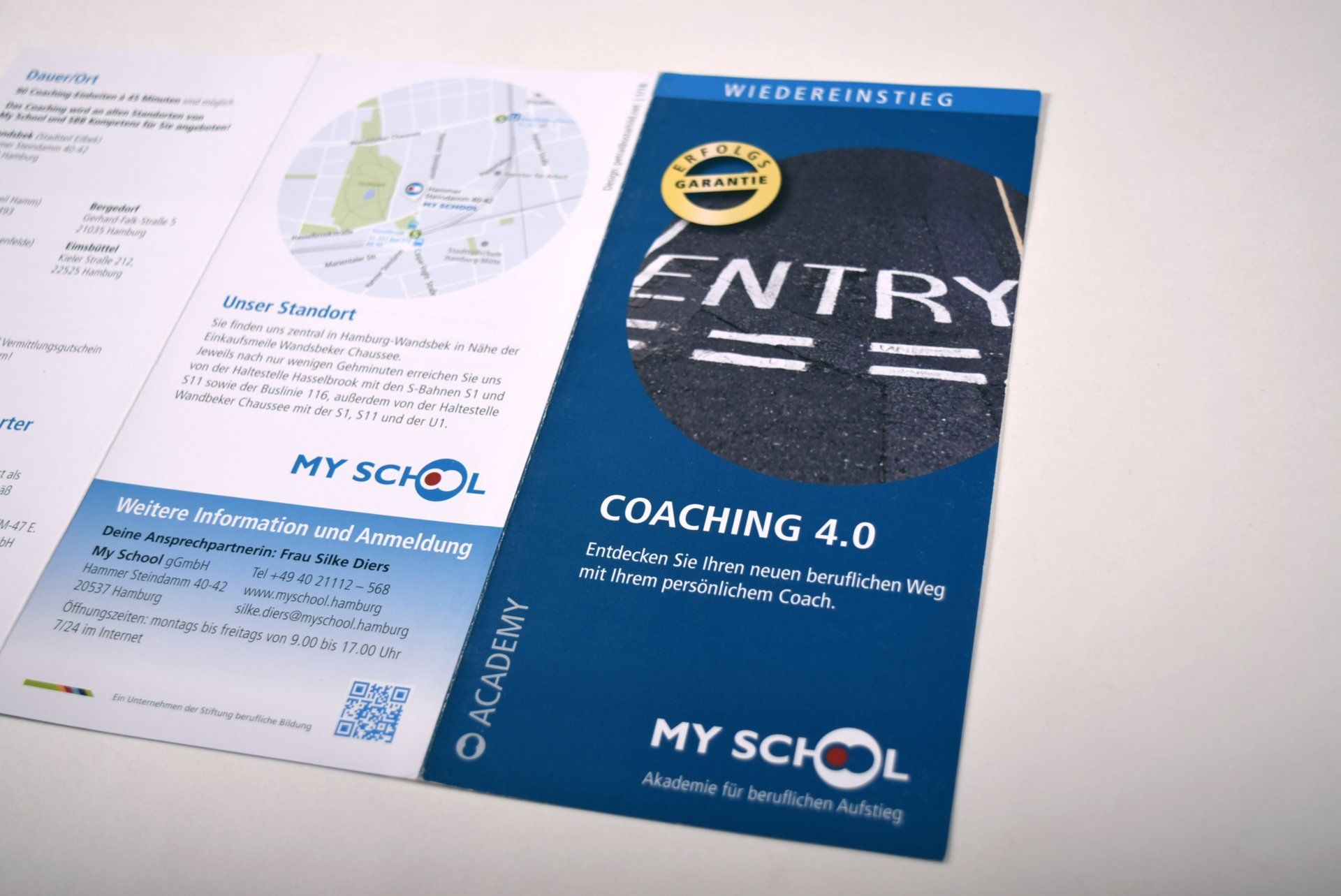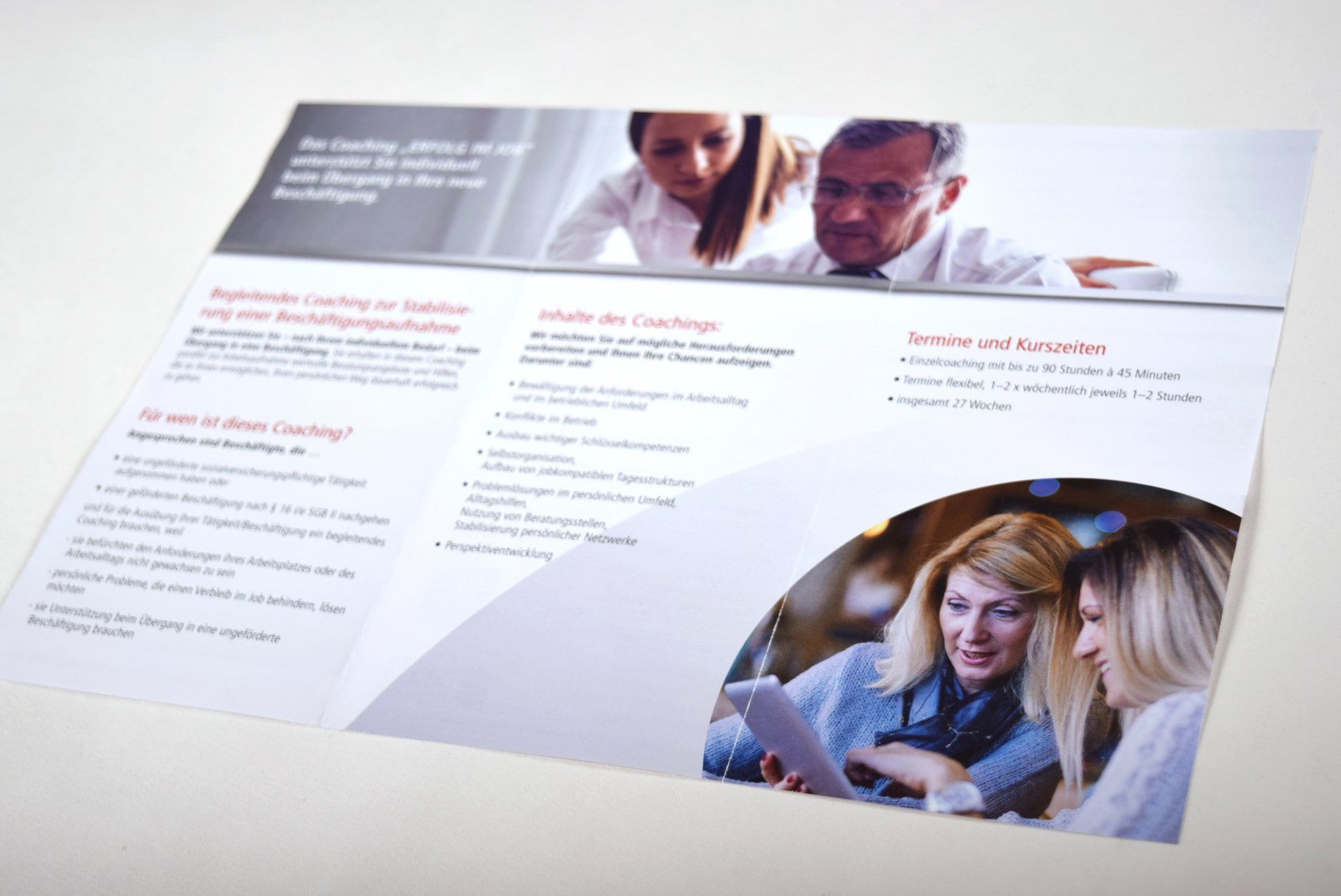Daher gibt es für den Außenauftritt für Logo, Visitenkarten und auch die Flyer einen Auftritt, der zur Akademie für beruflichen Aufstieg passt.