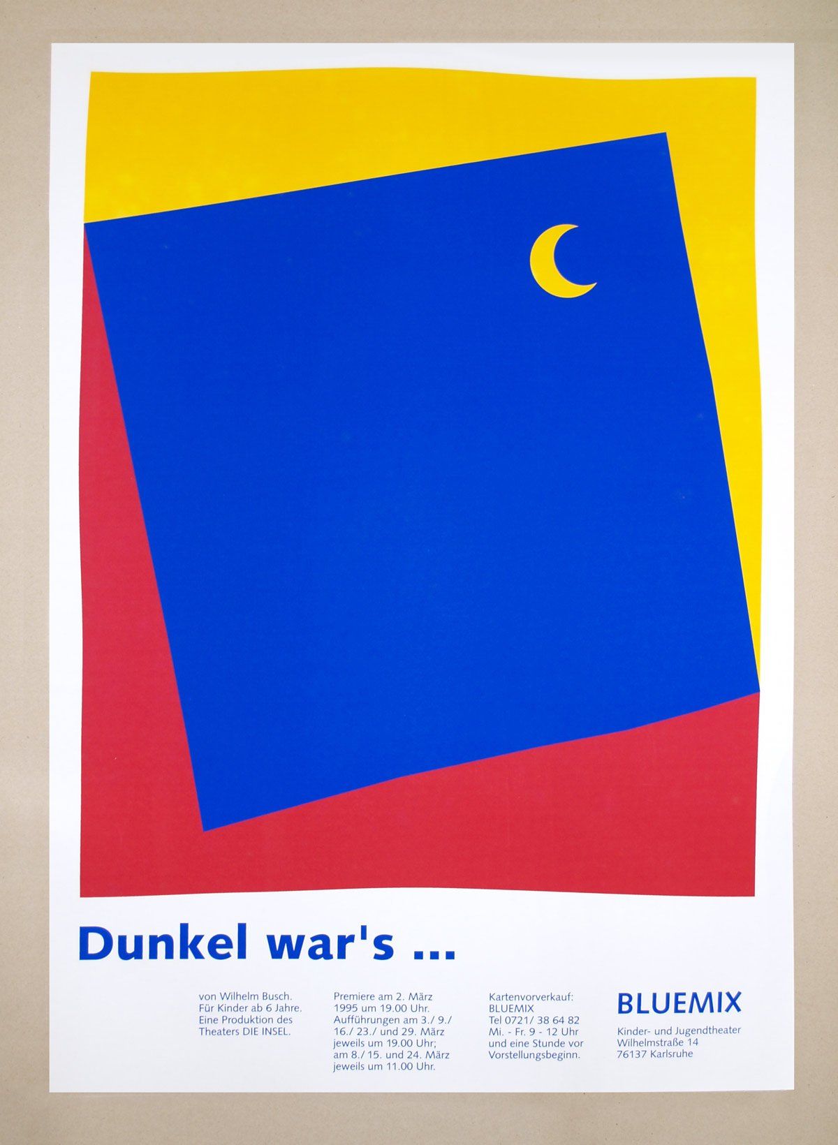 Für einen komplett neuen Auftritt gewann ich am Ende meines Studiums an der Staatlichen Hochschule für Gestaltung Karlsruhe (ZKM) 1994 den Pitch in einem Kinder- und Jugendtheater. Ich entwickelte dazu das neue Logo des Karlsruher Theaters, das auch die Grundlage für die gesamte CI und aller Plakate war, die ich für die nächsten Aufführungen erstellte. Der theroetische Teil meiner Diplomarbeit war die Betrachtungsweise des Erscheinungsbildes aus wahnehmungspsyhologischer Sicht. Meine Professoren (und z.T. auch Prüfer) waren Prof. Gunter Rambow, Prof. Kurt Weidemann, Prof. Dr. Dr. Lydia Hartl, Prof. Peter Sloterdijk und Prof. Lothar Spree.